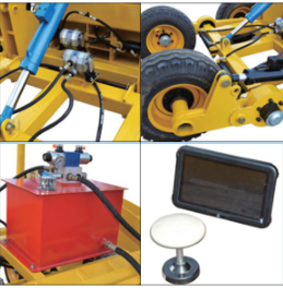 When in use, Field Leveler connects to a tractor via its traction bar. The hydraulic control system of Field Leveler lets users adjust the leveling blades’ height.