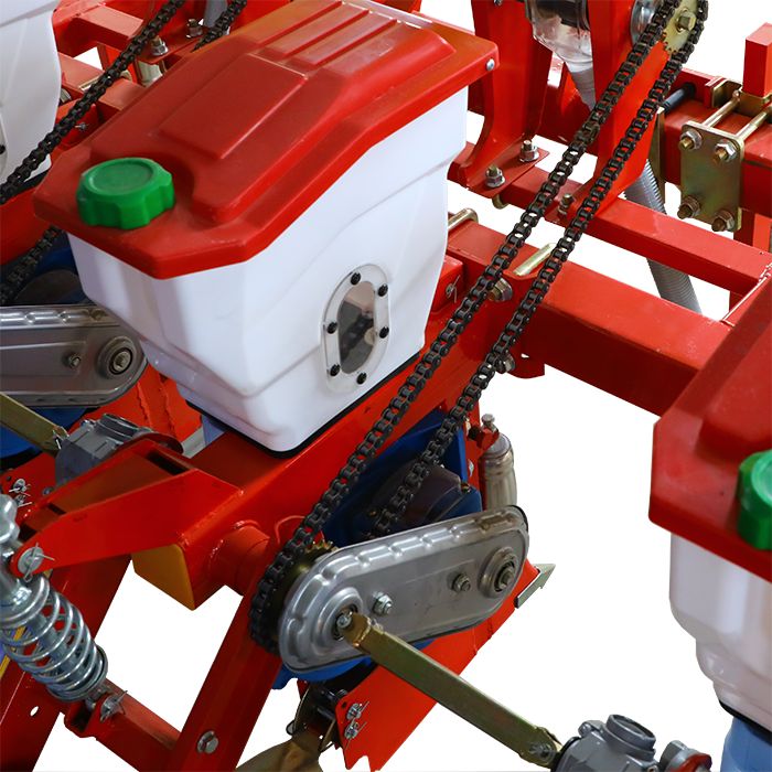 The Pneumatic Precision Corn Planters consists of an air pressure system, precision seed discs, a large-capacity seed bin, an adjustable depth control device and a sturdy frame. The air pressure system of the Pneumatic Precision Corn Planters provides stable suction, ensuring seed grabbing accuracy. The seed discs have special grooves to fit corn seeds, and the frame is made of anti-rust steel for long-term use. The depth control device allows flexible adjustment, while the 60L seed bin reduces refilling frequency.